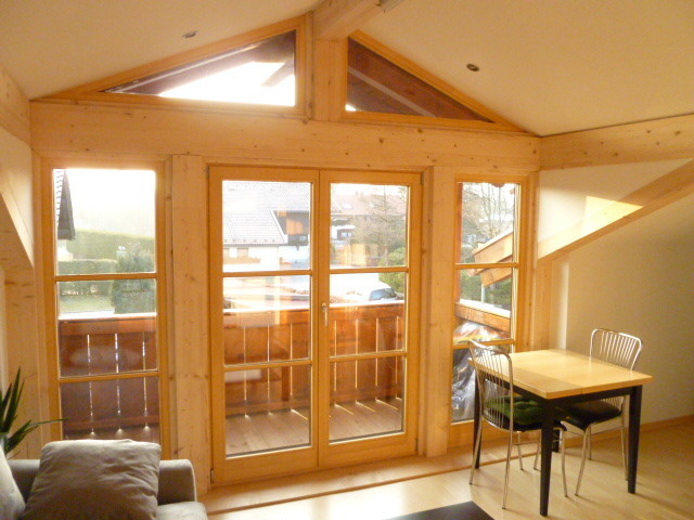 Bei diesem Objekt habe wir auch den gesamten Innenausbau übernommen. Durch die Holzdecke entstand ein sehr behagliches Wohnzimmer. Die weiße Decke des Anbaus steht in einem schönen kontrast zur Holzdecke im Wohnbereich.